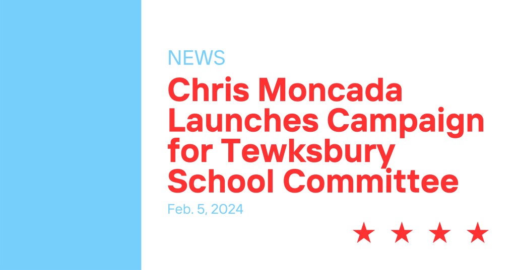 Chris Moncada, an elementary school parent and dedicated school volunteer, today announced his candidacy for Tewksbury School Committee.